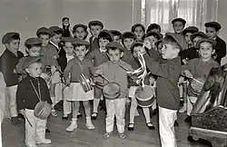 After hearing drums all night, children wake up with a version of the Tamborrada for children. They dress traditionally as soldiers from Napoleonic times and march around the city. Children from all the schools of San Sebastián march that day. They wear costumes that usually represent a particular country (such as England, Germany, or Romania). More recently, the parade has been pushed back to days before the festival proper; thus, the Children's Tamborrada is the first activity of the festival. 2024 marks the 63rd anniversary of the Children's Tamborrada, which launched in 1961 to promote the cultural legacy of the festival to the younger generations. A repeat performance is held at noon on the festival day. Fifty-two contingents from schools in the city join the celebrations beating their snare drums while honoring the heroes of the defense of the city and its patron.