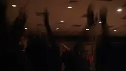 Tambu can refer to the small drum on which the music is played, the dance that accompanies the music, or the event where the music and dance take place. In modern tambu, the lyrics are usually in the Papiamento language and are sung along with a chapi (hoe), the tambu drum and sometimes other singers, while the audience claps to the rhythm.[5] The tambu rhythm is complicated and is passed down orally from generation to generation. Tambu consists of two beats; sla habri and sla será, the open and closed beat respectively. These beats alternate to create a musical dialogue. The lead vocalists are known for their skilful wordplay when delivering the performance's message.[6] Additionally, there are two types of tambu music; telele, which is a long, slow rising and falling melody, and tambu itself, which is faster paced and shorter in duration.[7]