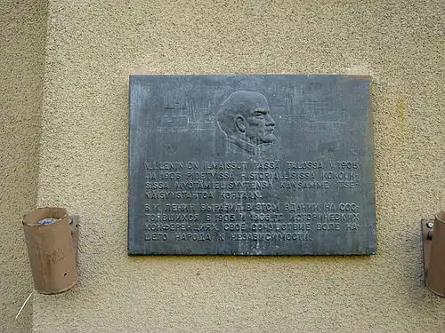 Finnish Lenin Museum observance plaque Gallery of Tampere Workers’ Hall |