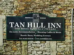 The Tan Hill Inn is a public house at Tan Hill, North Yorkshire. It is the highest inn in the British Isles at 1,732 feet (528 m) above sea level.[1] According to the Guinness Book of World Records, it is slightly higher than the Cat and Fiddle Inn in the Peak District, which is at 1,690 feet (520 m).[2]