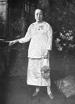 In 1918, she was the first Chinese woman to be awarded a Membership of the Most Excellent Order of the British Empire, for her efforts in the first World War.[6] In the second World War, she continued in aiding the British troops' welfare after escaping to Bangalore, India.[7] She was also the first Chinese woman to drive in Singapore.[8]