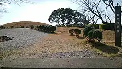 The site was opened as a park in 1972. Later, when the privately owned land on the east side of the burial mound was excavated in 1999, a 3.65-meter-wide-moat was confirmed, and this area was additionally designated in 2001.[2]Artifacts excavated are displayed at the Shime Town Historical Materials Room.