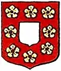"Gules an inescutcheon argent in orle eight cinquefoils d'or"