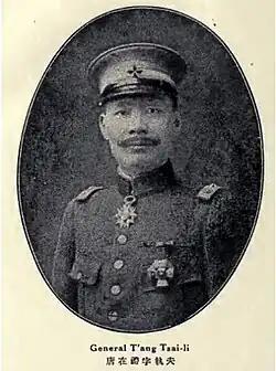Tang Zaili (Chinese: 唐在礼; Wade–Giles: T'ang Tsai-li; 1882–1964), courtesy name Zhifu (挚夫 or 执夫), was a Chinese civil servant and prominent military figure in the Qing dynasty and later the Republic of China. He was Military Counselor to Yuan Shikai, President of the Republic of China, and later served as China's Chief Military Delegate at the Paris Peace Accords in 1919.[1]