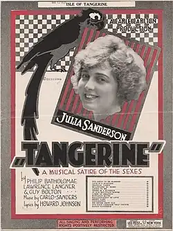 Tangerine is a musical with music by Monte Carlo and Alma M. Sanders, lyrics by Howard Johnston, about three men jailed for not paying alimony, written by Philip Bartholomae and Guy Bolton.[1][2]