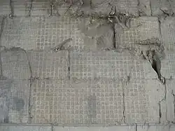 The earliest modern identification of the Tangut script occurred in 1804 when a Chinese scholar called Zhang Shu (Chinese: 張澍; pinyin: Zhāng Shù, 1781–1847) observed that the Chinese text of a Chinese-Tangut bilingual inscription on a stele known as the Liangzhou Stele at the Huguo Temple (護國寺) in Wuwei, Gansu, had a Western Xia era name, and so concluded that the corresponding inscription in an unknown script must be the native Western Xia script; and hence the unknown writing in the same style on the Cloud Platform at Juyong Pass at the Great Wall of China north of Beijing must also be the Tangut script.[1]