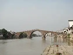 Guangji Bridge was built in 1494. At 78.7 meters long, 5.2 meters wide, and 13.86 meters high, it was the only 7-arch stone bridge on the Grand Canal. It is rumoured that the Guangji Bridge was built in the Tang dynasty and expanded in the Ming dynasty. There are 80 steps on each side of the bridge.[4]