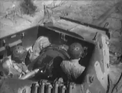 All the US tank destroyers were built without turret roofs. This was done to save weight but also allowed a wider field of view to spot enemy armor[15] and quicker ammunition stowage. The drawbacks included vulnerability to small arms fire (especially from elevated positions), grenades, and splinters from air bursting artillery.[32] Exposure to wind, rain, snow and freezing temperatures also made operations difficult, and many tank destroyer crews placed tarpaulins or other material over the turret to improve both their comfort and their operational effectiveness.[33] Other significant differences between tank destroyers and tanks was that tank destroyers lacked coaxial and bow .30-caliber machine guns. This reduced their ability for infantry support and close-in self defense. Tank destroyers did retain a turret top .50-caliber machine gun as did medium tanks and useful for reconnaissance by fire and self defense.