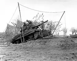 10. ^ During the battle of St. Vith, M36 tank destroyers were used as the base of fire against the advancing German forces, while M4 medium tanks were used in a counter-attacking role. Other battles in the Ardennes saw effective use of tank destroyers in a mobile defense, but when they were used in a counter-attacking role, they were often knocked out or destroyed.