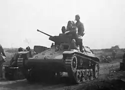 Pre-war plans called for two main tanks: the main tank was to be the Panzer III medium tank, supported by smaller numbers of the howitzer-armed Panzer IV. However, by the beginning of the invasion of Poland, only a few hundred of these vehicles were available. As a result, the invasions of Poland and France were carried out primarily with the less capable Panzer I and Panzer II light tanks (armed with machine guns and a 20 mm autocannon respectively), with some gun-armed light tanks of Czechoslovak design (Panzer 35(t) and Panzer 38(t), both armed with a 37 mm gun). Even in 1941, Panzer III production amounted only to about a thousand tanks, forcing the Germans to use Czech tanks as substitutes for the Panzer III. As the war proceeded, the production of heavier tanks increased.[37]