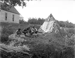 The Mi’kmaq are the Indigenous peoples of Tantramar marshes and surrounding areas, they have many traditional uses for the resources in this area. The marsh was used for harvesting of different kinds of plants, wildfowl, small mammals and fish as means of food.[26] Before the arrival of Europeans, well-travelled portage routes connected the Bay of Fundy with the Northumberland Strait as the marsh was used seasonally.[26] As years passed and different settlers came to the Tantramar marshes the use of these resources changed, going from the fish weirs of the Mi'kmaq to the creation of dry farming by the Acadians from the creation of sluice gates to keep out water where the rivers crossed the dykes in order for planting to take place.[27]