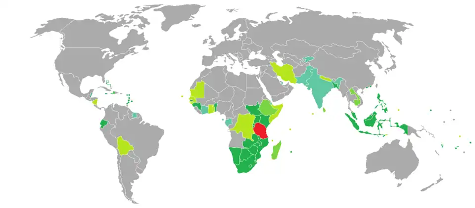 As of 13 November 2021, Tanzanian citizens had visa-free or visa on arrival access to 72 countries and territories, ranking the Tanzanian passport 77th (tied with Kenyan Passport) in terms of travel freedom according to the Henley visa restrictions index.[1]