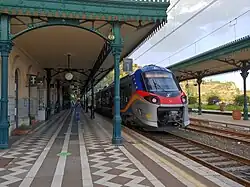 Taormina–Giardini railway station (Italian: Stazione di Taormina–Giardini or Taormina–Giardini, signed as Taormina–Giardini Naxos) is a historic railway station in the Italian municipality of Taormina in Sicily. It is owned by the Ferrovie dello Stato, the national rail company of Italy.[2]