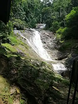 The Batang Padang River flows through Tapah.[3] Major neighbouring towns are Kampar and Bidor. Attributing to its location on the western foothills of the Titiwangsa Range, there are some magnificent waterfalls within its vicinity. The Lata Kinjang waterfall is about 18 km from Tapah on the road to Chenderiang. It is an impressive series of cascades down a 100 m drop. The falls can be seen from the North–South Expressway (PLUS). The other one is the Lata Iskandar waterfall, located further inland along the main route linking the town with Ringlet of Cameron Highlands.