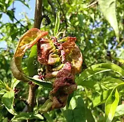 - ^ a b c d Peter, Kari (May 2017). "Disease of the Month: Peach Leaf Curl". PennState Extension. Archived from the original on 6 May 2021. Retrieved 11 December 2018.