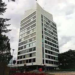The Tapiola Central Tower (Finnish: Tapiolan keskustorni) is a high-rise building at the centre of the Tapiola garden city in northeastern Espoo, Finland. The tower is 49 metres (161 ft) high and has 13 floors. It has a total floor space of 5,600 m2 (60,000 sq ft). The tower was designed by architect Aarne Ervi and it was completed in 1961. Construction of the tower started in 1958.[1] The tower was originally known as Konttoritorni ("office tower").[2]