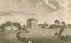 Tapton Hall, Derbyshire (not to be confused with Tapton Hall, Sheffield). In 1638 the lordship of Tapton with a capital messuage known as Tapton Hall was sold by Durant Allsopp and Thomas Allsopp, gentlemen, also of Durant Hall, Holy Well Street, Chesterfield, to George Taylor (d.1668) of London, Vintner, with closes (fields) at Brimington with several other properties including Durant Hall.[5] Taylor left instructions in his will for the founding of alms houses, and 6 alms houses were duly erected in 1678 in Salter Gate, by his son-in-law Charles Scrimshire, as the inscription in the centre of the buildings attests.[6] It was inherited by Taylor's daughter and sole-heiress Esther Taylor, who married Sir Charles Scrimshire of Norbury in Staffordshire, Sheriff of Derbyshire in 1698.[7] It was then acquired in 1701, with Durant Hall, by Thomas Gladwin,[8] a member of the Gladwin family of Tupton Hall and descended via his co-heiress to the Clarke family and thence to the Cox family, and in 1746 was sold, with Durant Hall, and with the manor and lordship of Tapton, by William Coxe to Adam Slater of Chesterfield, apothecary.[9]