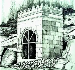 Taq-e Gara or some times Taq-e Shirin is a stone structure in Iran which belongs to the Sasanian Empire. It is built in the Patagh Pass in the heights known as the Gate of Zagros in Kermanshah Province of Iran. This structure is located on the way from Kermanshah to Sarpol-e Zahab, on the 15th kilometer from Sarpol-e Zahab; beside an ancient paving which connects the Iranian Plateau to Mesopotamia.[1][2] Due to changes of the path, now it is located below the road slope.[3]