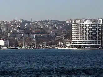 Tarabya (Ottoman Turkish: Tarabiye, Greek: Θεραπειά, romanized: Therapiá) is a neighbourhood in the municipality and district of Sarıyer, Istanbul Province, Turkey.[1] Its population is 17,852 (2022).[2] It is located on the European shoreline of the Bosphorus strait, between the neighbourhoods of Yeniköy and Kireçburnu. It is famous for its coastal fish restaurants. Lycée Français Pierre Loti d'Istanbul and Tarabya British Schools both have high school campuses in Tarabya.[3][4]