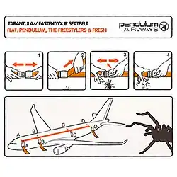 "Tarantula" / "Fasten Your Seatbelt" is the fourth single by Australian drum and bass band Pendulum. It was released on 27 June 2005 by independent label Breakbeat Kaos and was their second release with the label. While "Fasten Your Seatbelt" features production from The Freestylers, "Tarantula" features production from Fresh and vocals from $pyda, together with Tenor Fly from The Freestylers. It peaked number 60 on the UK Singles Chart.[1] Both songs were included on the CD release of Hold Your Colour a month later. "Fasten Your Seatbelt" samples a line from Spider-Man 2 where Otto Octavius is firing up the fusion reactor for the first time ("Ladies and gentlemen, fasten your seatbelts"), as well as the sound the reactor made when it was being primed.