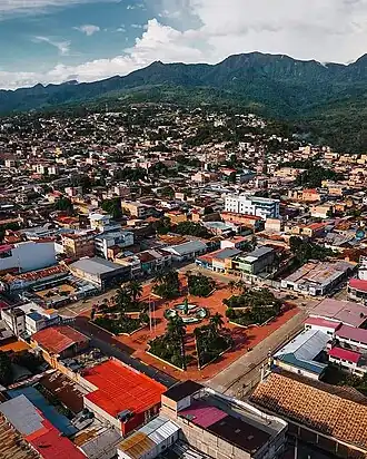 Tarapoto, founded in 1782 as Santa Cruz de los Motilones de Tarapoto,[2] is a commercial hub town in the San Martín Province of the Department of San Martín of northern Peru.[3] It is an hour by plane from Lima, in the high jungle plateau to the east of what is known as the selva baja (low jungle). Although Moyobamba is the capital of the region, Tarapoto is the region's largest city and is linked to the Upper Amazon and the historic city of Yurimaguas by a relatively well-maintained transandean highway, paved in 2008–9.[4]