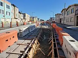 In August 2020, service along the route was replaced by buses to allow for the construction of improvements to the L Taraval line.[2] The project was finished on September 28, 2024, and train service along the line resumed on that day.[3]
