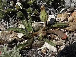 Taraxacum ceratophorum inhabits the subalpine and alpine zones,[5] where it grows in mountainous regions.[6] The species can grow in both moist and dry conditions, inhabiting a variety of soil types including gravel, sand, and clay.[3] The plant utilizes habitats such as alpine meadows, fellfields and rocky slopes.[5] It will also colonize manmade habitat such as gravel roads.[5] The species tends to be restricted to mountainous regions, typically above the treeline, where it can grow in areas of moist soil among large rocks.[6] It can be found at elevations up to 3000 meters above sea level.[2]