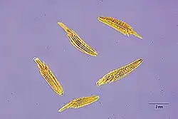 It is a diploid species that reproduces sexually,[2] and produces good pollen.[1] Another species, a triploid apomict that also has horned bracts and produces rubber, T. brevicorniculatum Korol. has frequently been misidentified as T. kok-saghyz.[1][2]