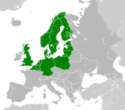 Taraxacum privum is native to various regions of northern and central Europe. Its native range includes the Baltic States, Belgium, Denmark, Finland, Germany, the Netherlands, northwestern European Russia, Norway, Poland, and Sweden.[4] Within the British Isles, it is recorded from scattered localities in England and Wales, including several vice-counties, where it is considered very local but probably native.[2] The species has also been introduced into the Free State province of South Africa.[4][1]