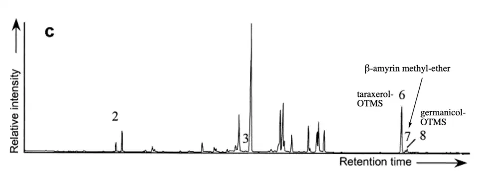 - ^ Killops, S.D.; Frewin, N.L. (December 1994). "Triterpenoid diagenesis and cuticular preservation". Organic Geochemistry. 21 (12): 1193–1209. Bibcode:1994OrGeo..21.1193K. doi:10.1016/0146-6380(94)90163-5. ISSN 0146-6380.