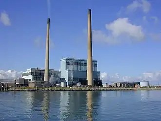 Tarbert Power Station is an oil fired power station situated on the Shannon Estuary in Tarbert, County Kerry, Ireland. Construction commenced in October 1966 and the first block was commissioned in 1969.[1] The station comprises two 60 MW (Unit I and II) and two 250 MW oil fired steam turbines. It was the largest station of ESB during the 1980s. The plant was sold to Endesa in 2009, and subsequently to SSE in 2012. Until early 2022 it was scheduled for closure by the end of 2023. However, due to the 2021–2024 global energy crisis, Tarbert station will maintain operation for an indefinite amount of time, until enough low-carbon generating capacity will be available as a replacement.[2]