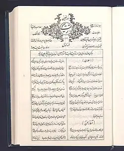 The Persian Tarbiyat (Persian: تربيت; DMG: Tarbīyat; English equivalent: "Education") was the first non-governmental newspaper in Iran.[1] It was founded in Teheran by Mirza Mohammad Hosseyn Foroughi, also known as Zaka-al Molk, in 1896 and was published until 1907. For Foroughi, who was a poet and also worked as a translator for Naser al-Din Shah, the acquisition of modern sciences was of decisive importance for the development of the country and its society.[2] Contrary to the common perception of traditional education and science, he wanted to contribute to the modernisation of the Iranian society by publishing this journal.[3] The publication history of the nine years with a total of 434 issues varied between daily, weekly and monthly publications.[4] The articles deal with topics such as history and geography but also with medical and other scientific subjects. Particularly due to its literary focus and the publication of numerous translations the journal was a literary pioneer of that time.[5]