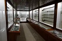 Additionally, the museum showcases various examples of armour, including chainmail, helmets, and shields.[14] Most of the armour collection originates from India and Iran. However, the earliest piece on display is a set of early 16th-century Ottoman mirror armour, stamped with the mark of the Irene arsenal.[24]