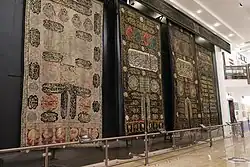 Additionally, the museum holds examples of 'Al-Sadu' or Bedouin weaving from Kuwait. These old Kuwaiti pieces are rare as they were typically used until they were worn out. Unfortunately, a significant number of carpets from Iraq and Iran were lost during the Iraqi invasion and occupation of Kuwait. An important aspect of the textile collection are the museums Holy Coverings. Among these are four curtains (Sitara) that were used to cover the entrance to the Ka'aba.[25][38]