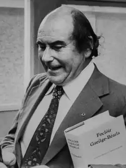 Upon Ó hUid's release, he worked as part-time secretary for the Belfast branch of Conradh na Gaeilge and became an active member of the fascist party Ailtirí na hAiséirghe.[6] Between November 1945 and January 1946, Ó hUid published a number of short stories and an article in An Iris. In 1946 he married Eílís Ní Earáin in Belfast, with whom he would have two children, a son named Tarlach and a daughter named Gráinne, and in 1948 moved to Dublin, where he wrote the radio comedy Ruaig ar roicne. Ó hUid subsequently acquired a job as assistant-editor for the newspaper Inniu, of which he would become editor in 1972 until the paper disbanded in 1984.[3]