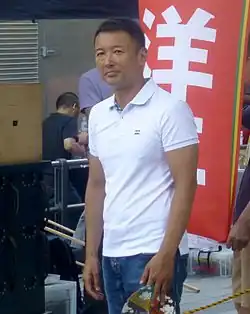 He attempted to run for a seat in the House of Representatives during the 2012 general election, but placed second in the Tokyo 8th district and did not win a seat.[5] He then ran an independent campaign (endorsed by the New Socialist Party[6]) to be elected to the House of Councillors in the 2013 election,[7][8][9][10] and was elected on 21 July. He was supported in the election by the People's Life Party, Social Democratic Party and Greens Japan.