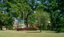 During the Second World War, Tarragindi was the site of a field hospital administered first by the American Army (for soldiers treated for shell shock) and later by the British and Australian forces. The Ekibin Hospital was bounded by Sexton Street and Toohey Road and encompassed parts of Cracknell, Effingham, Fingal and Lutzow streets.[17] After the war, the site was used by the Housing Commission to accommodate displaced persons. Today, little remains of the establishment except for possible foundations of a gun emplacement in the midsection of Fingal Street. The Ekibin Memorial Park on Cracknell Road commemorates the establishment of the hospital.