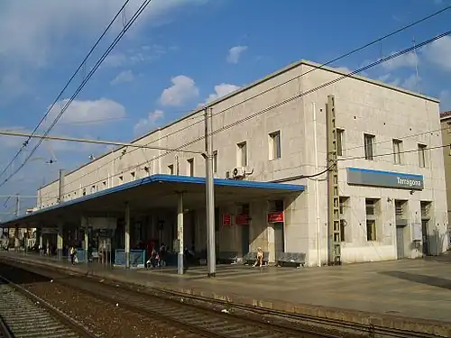 Tarragona railway station is the central railway station of Tarragona, Spain. The station is situated on the Valencia−Sant Vicenç de Calders railway and is part of Adif and it accommodates Renfe conventional and Rodalies de Catalunya medium-distance trains.[1][2][3]