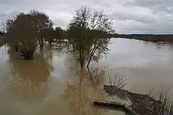 The Tasciaca site is located in the Cher valley, which was canalized in the 19th century and is now around 50 m wide. This valley, composed of Quaternary alluvial deposits brought down by the Cher, cuts deeply into the limestone plateau (Turonian and later), which rises to an altitude of around 80 m on the northern edge of Thésée and towards Pouillé to the south, where the valley settles at 65 m at the Pouillé archaeological site and drops to 61 m at Monthou-sur-Cher.[1][2] Between the D176 to the north and the D17 to the south, the valley is around 1.3 km wide at the site. Thésée is also located at the confluence of the Cher and the Renne,[3] a small right bank tributary rising in the commune of Sassay.[4]