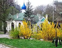 Small Palilulska church (church of Palilula) was built in 1835. It was destroyed in the German bombing of Belgrade on 6 April 1941. Today existing Serbian Orthodox St. Mark's Church was built in 1931–1940, in the medieval Serbo-Byzantine style, patterned after the Gračanica monastery. The Serbian Emperor Dušan is buried inside, along with the Serbian Patriarch German. Next to it is a small Russian Orthodox church of the Holy Trinity, built in 1924, inside of which the Russian general Pyotr Wrangel is buried.[11]
