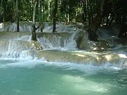 The Tat Sae Waterfalls, also referred to as the Tad Sae Waterfalls are waterfalls located along a tributary of the Nam Khan River in Luang Prabang Province, Laos. They are located about 18 kilometres (11 mi) southeast of Luang Prabang and about 2 kilometres (1.2 mi) from the village of Bak En. The falls flow over limestone formations amongst trees.[1]