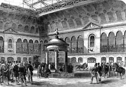 It was founded in 1766 by Richard Tattersall (1724–1795), who had been stud groom to the second Duke of Kingston. The first premises occupied were near Hyde Park Corner,[1] in what was then the outskirts of London. Two "Subscription rooms" were reserved for members of the Jockey Club, and they became the rendezvous for sporting and betting men. Among the famous dispersal sales conducted by "Old Tatt" were those of the Duke of Kingston's stud in 1774 and of the stud of the Prince of Wales (afterwards George IV) in 1786. The prince often visited Richard Tattersall, and was joint proprietor with him of the Morning Post for several years. He was succeeded by his son, Edmund Tattersall (1758–1810), who extended the business of the firm to France. The third of the dynasty, Richard Tattersall (1785–1859), the eldest of Edmund's three sons, became head of the firm at his father's death. He had his grandfather's ability and tact, and was the intimate of the best sporting men of his time. Another Richard Tattersall (1812–1870), son of the last, then took command of the business. His great-grandfather's 99-year lease having expired, he moved the business to Knightsbridge in 1865. Richard was followed by his cousin, Edmund Tattersall (1816–1898), and he by his eldest son, Edmund Somerville Tattersall (1863–1942).[2]