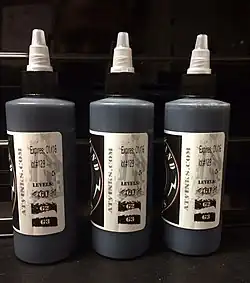Ancient tattooing practices typically used dark pigments derived from vegetable and animal materials.[17] Alongside the development of more complex technology for tattooing, such as electric tattoo machines, tattoo artists developed inks with pigments derived from colorful minerals, both natural and synthetic.[17] People who continue to practice traditional tattooing methods and styles may make their own pigments or purchase manufactured ink. The history of tattoo ink development is connected to the history of pigment development.
