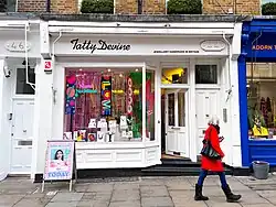 Tatty Devine is a brand name for a jewellery company based in the East End of London, owned by Rosie Wolfenden and Harriet Vine who established the company in 1999. They have one shop in London's Covent Garden, situated on Neal Street. They make laser cut acrylic-based art jewellery which is handmade in the UK and personalised Name Necklaces, laser cut and handmade to order. In 2013, Rosie Wolfenden and Harriet Vine were awarded MBEs for Services to the Fashion Industry.[1]