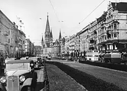 Tauentzienstraße, or Tauentzienstrasse (see ß;[1] colloquially: der Tauentzien; transl. Tauentzien Street), is a major shopping street in the City West area of Berlin, Germany. With a length of about 500 m (1,600 ft), it runs between two important squares, Wittenbergplatz in the east and Breitscheidplatz in the west, where it is continued by the Kurfürstendamm boulevard. While the eastern half belongs to the Schöneberg district, the western part (beyond Nürnberger Straße) is in Charlottenburg.