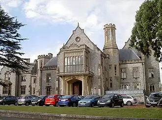 Taunton was the main settlement and centre of the local government district of Taunton Deane. The district, formed on 1 April 1974 under the Local Government Act 1972, by merging the municipal borough of Taunton, Wellington urban district, Taunton Rural District, and Wellington Rural District, was granted borough status in 1975, perpetuating the mayoralty of Taunton.[36] The district was named as an alternate form of the Taunton hundred. Taunton Deane Council, once based at the Municipal Buildings in Corporation Street,[37] moved to modern facilities at Deane House on Belvedere Road in spring 1987.[38][39]