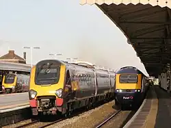 Taunton railway station is a junction station on the route from London to Penzance, 163 miles 12 chains (263 km) west of London Paddington station, measured via Box,[1] although most London bound services traverse the shorter route via Newbury. It is situated in Taunton, Somerset, and is operated by Great Western Railway. The station is also served by CrossCountry trains and by the West Somerset Railway on special event days and by mainline steam excursions.