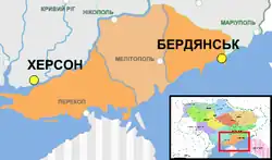 Tavria Okruha (Ukrainian: Таврійська округа, romanized: Tavriiska okruha) was an administrative subdivision of the Ukrainian State (Ukraine) created in April 1918. The okruha was governed by a starosta from Berdiansk. The territory consisted of the continental part of the earlier Tavria guberniia, without the territory of the Crimean Peninsula.