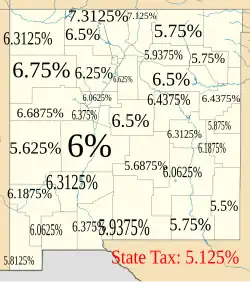 - ^ "Gross Receipts Tax Schedule Effective January 1, 2013 through June 30, 2013" (PDF). State of New Mexico, Taxation and Revenue Department. Retrieved March 4, 2013.