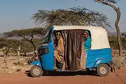In Ethiopia, taxis are generally blue and white, with white tops and blue bodies. Newer metered taxis are often yellow and green but have no set livery.